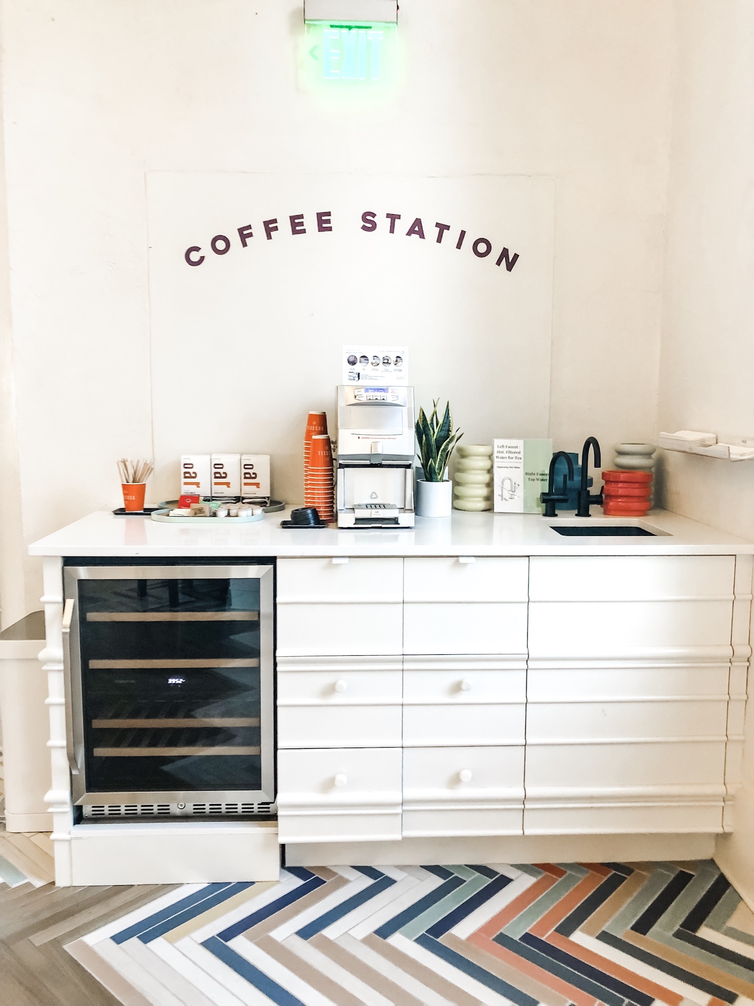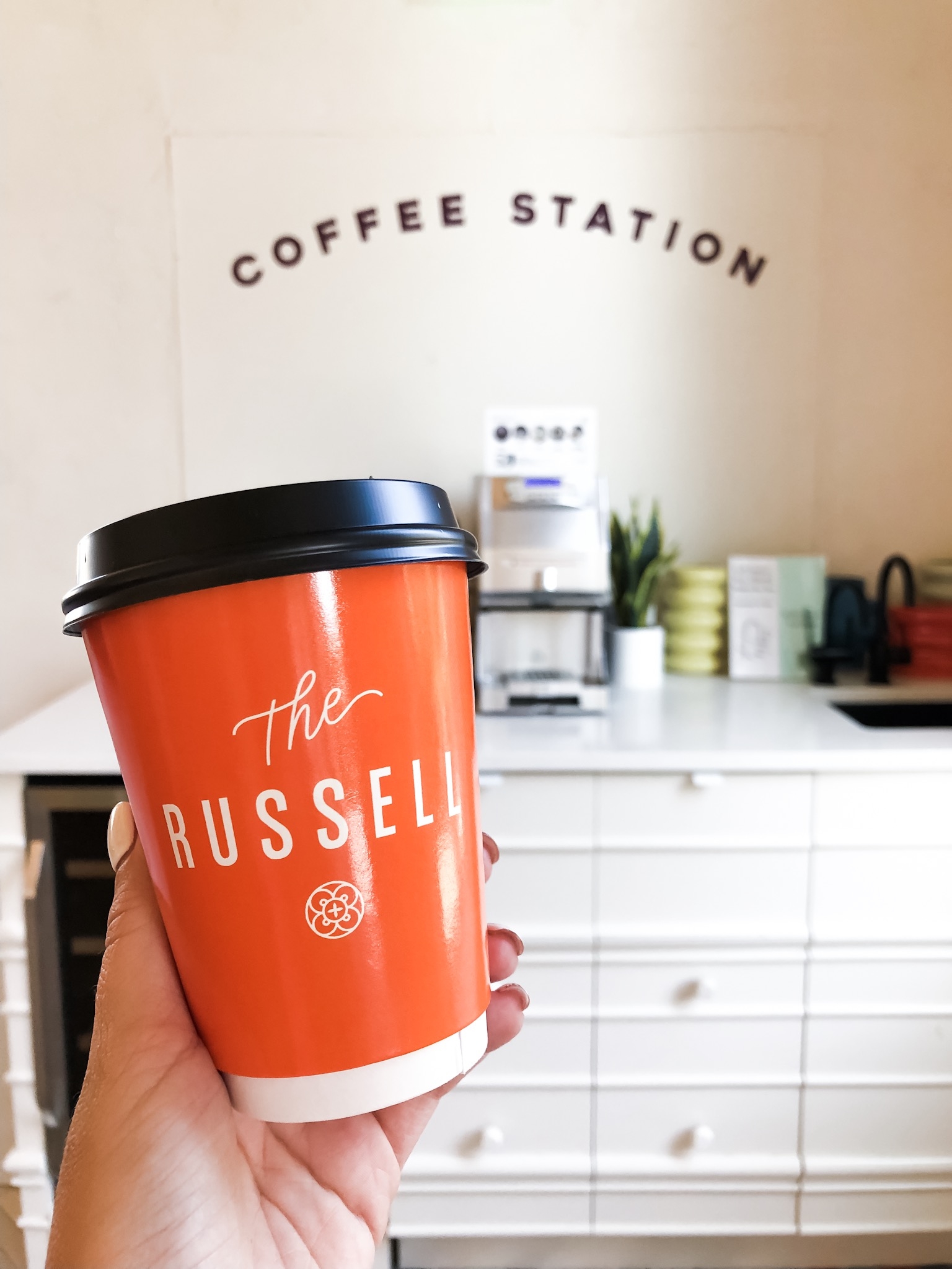 At The Russell, there are no elevators, but there is a working dumbwaiter for your luggage. The lobby also boasts a podcast studio, luggage lockers to store your things if you arrive before check-in, a fun photo both, and a fully stocked coffee station.